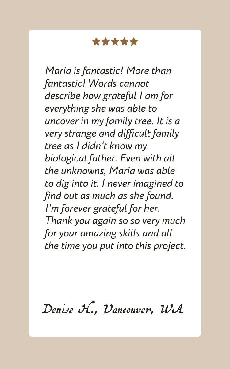 I can help. With decades of experience researching family history I am able to search available information much more quickly and efficiently than you could, make connections that you would not have thought of and identify sources you don’t even know are there. And if you need help processing the emotions brought up by learning about your ancestors’ lives, I can do that, too. You are not alone.